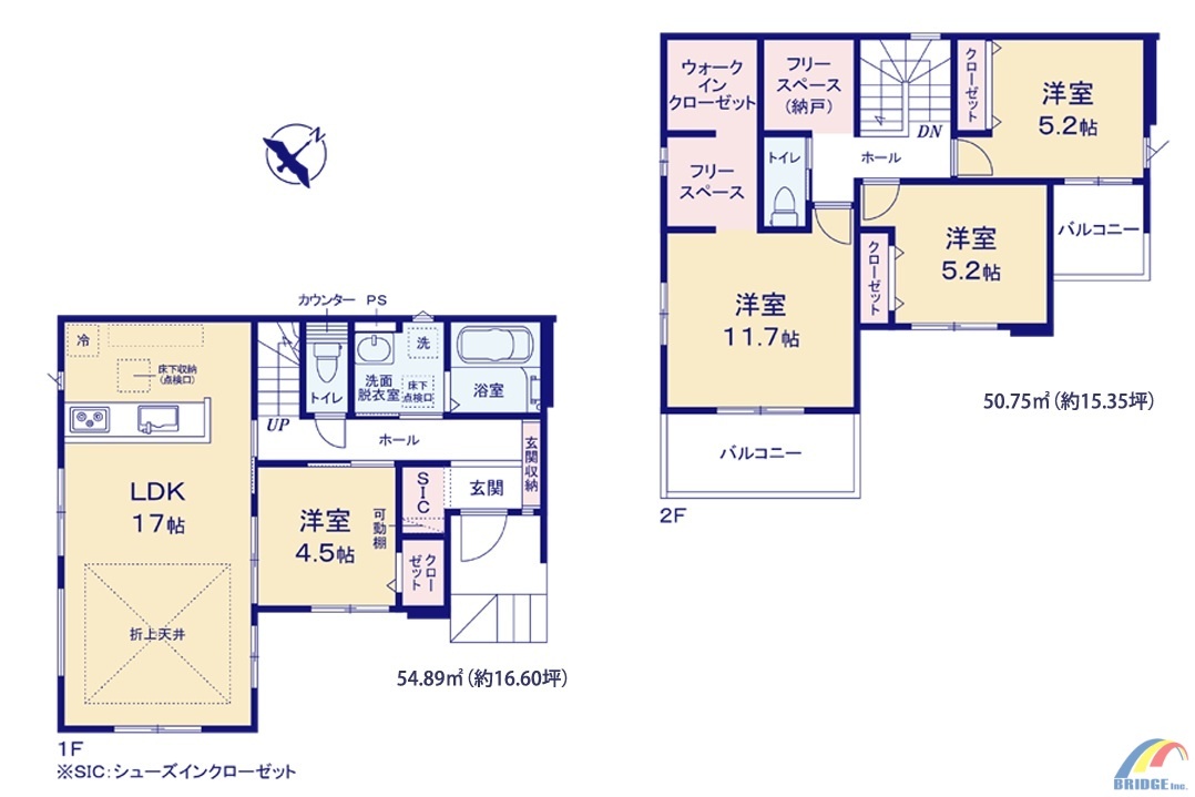 | 間取 | 4LDK + WIC、SIC、フリースペース付き (LDK17帖、洋室11.7帖、洋室5.2帖、洋室5.2帖、洋室4.5帖) | ||