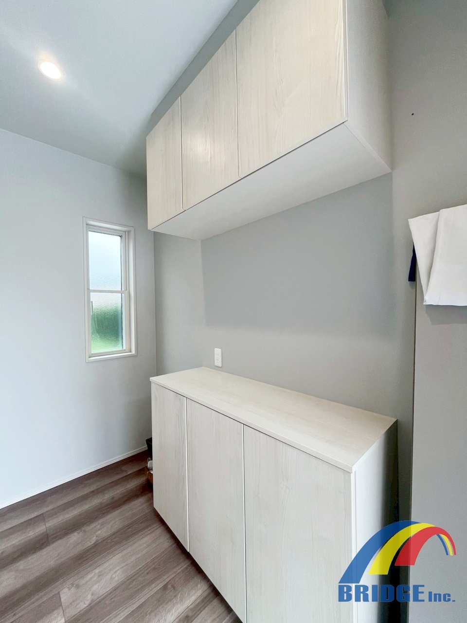 2号棟 朝の身支度が快適な独立洗面台♪裏は収納になっており、お化粧道具もすっきり収納が出来ます!