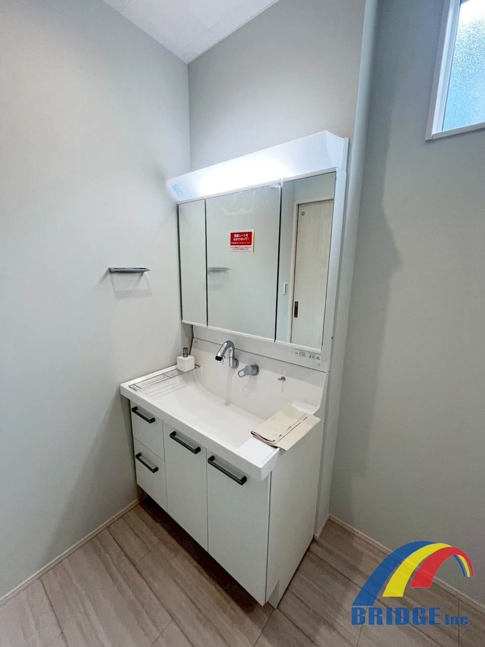 3号棟 朝の身支度が快適な独立洗面台♪裏は収納になっており、お化粧道具もすっきり収納が出来ます!