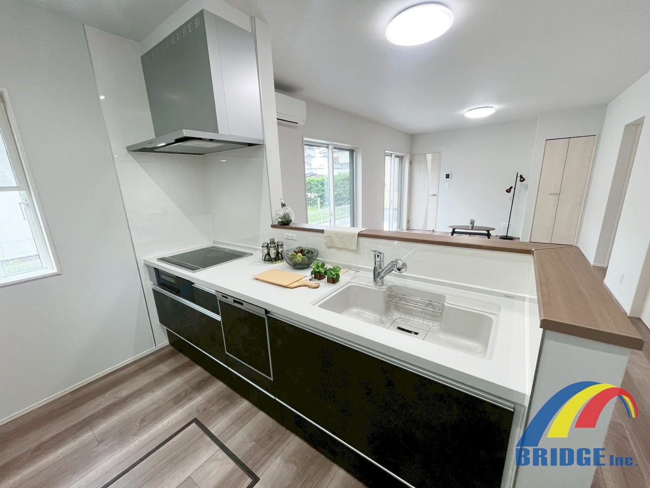 2号棟 料理をしながらリビング全体を見渡せるカウンターキッチン