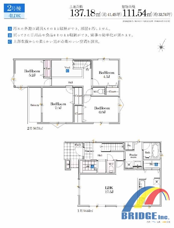 | 土地面積 | 137.01m² ~ 137.18m² 公簿 | ||