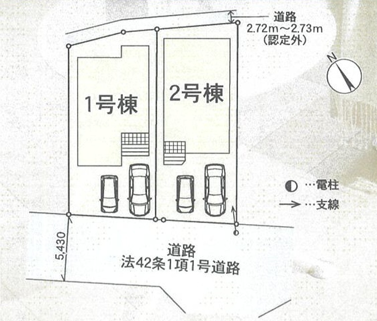 | 接道 | 南西側5.43M公道に接道 北東側2.72M道路に2.73M接道 |