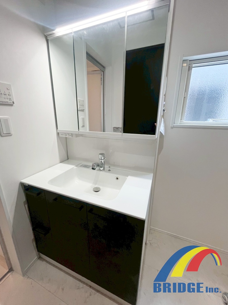 朝の身支度が快適な独立洗面台♪裏は収納になっており、お化粧道具もすっきり収納が出来ます!