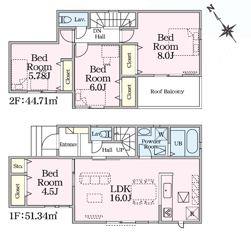| 間取 | 4LDK + 全居室収納付き (LDK16帖、洋室8帖、洋室6帖、洋室5.78帖、洋室4.5帖) | ||