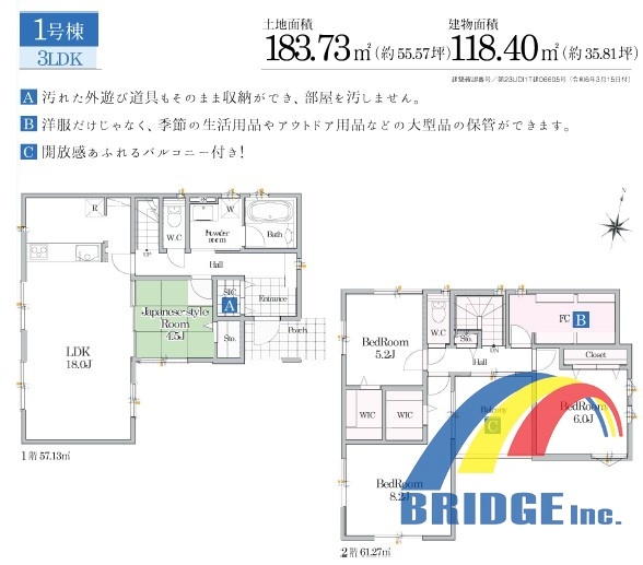 | 土地面積 | 183.73m² 公簿 | ||