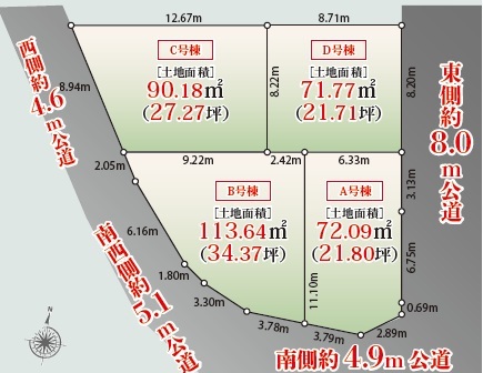 | 接道 | 東側8M公道に接道 | 小学校区 | 稲丘小学校(470m) |