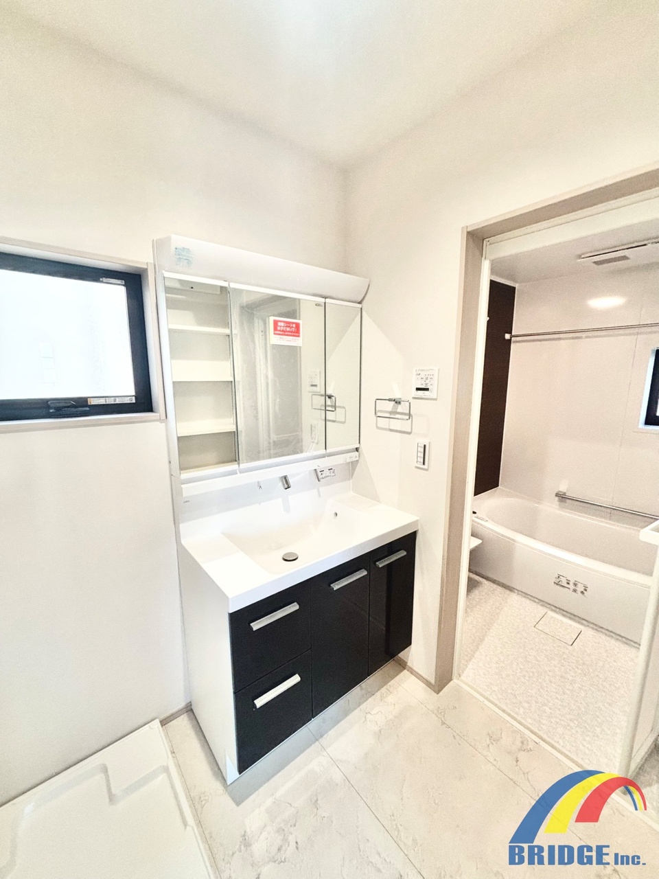 朝の身支度が快適な独立洗面台♪裏は収納になっており、お化粧道具もすっきり収納が出来ます!