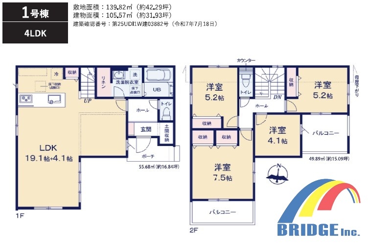 | 建築確認番号 | 第25UDI1W建03882号 | 駐車スペース | 2台(カースペース:並列) |