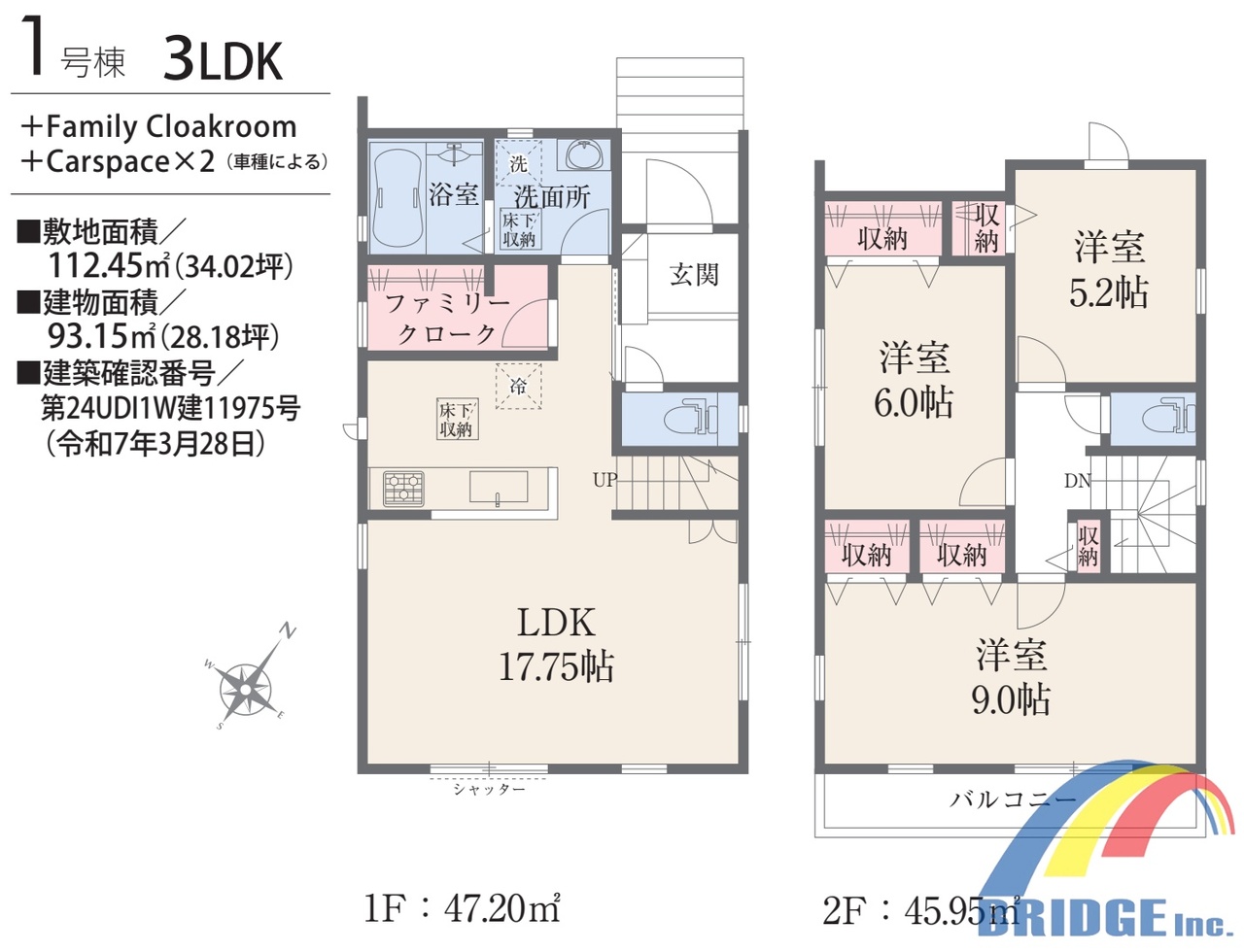 | 建築確認番号 | 第24UDI1W建11975号 | 駐車スペース | 2台(カースペース:並列) |