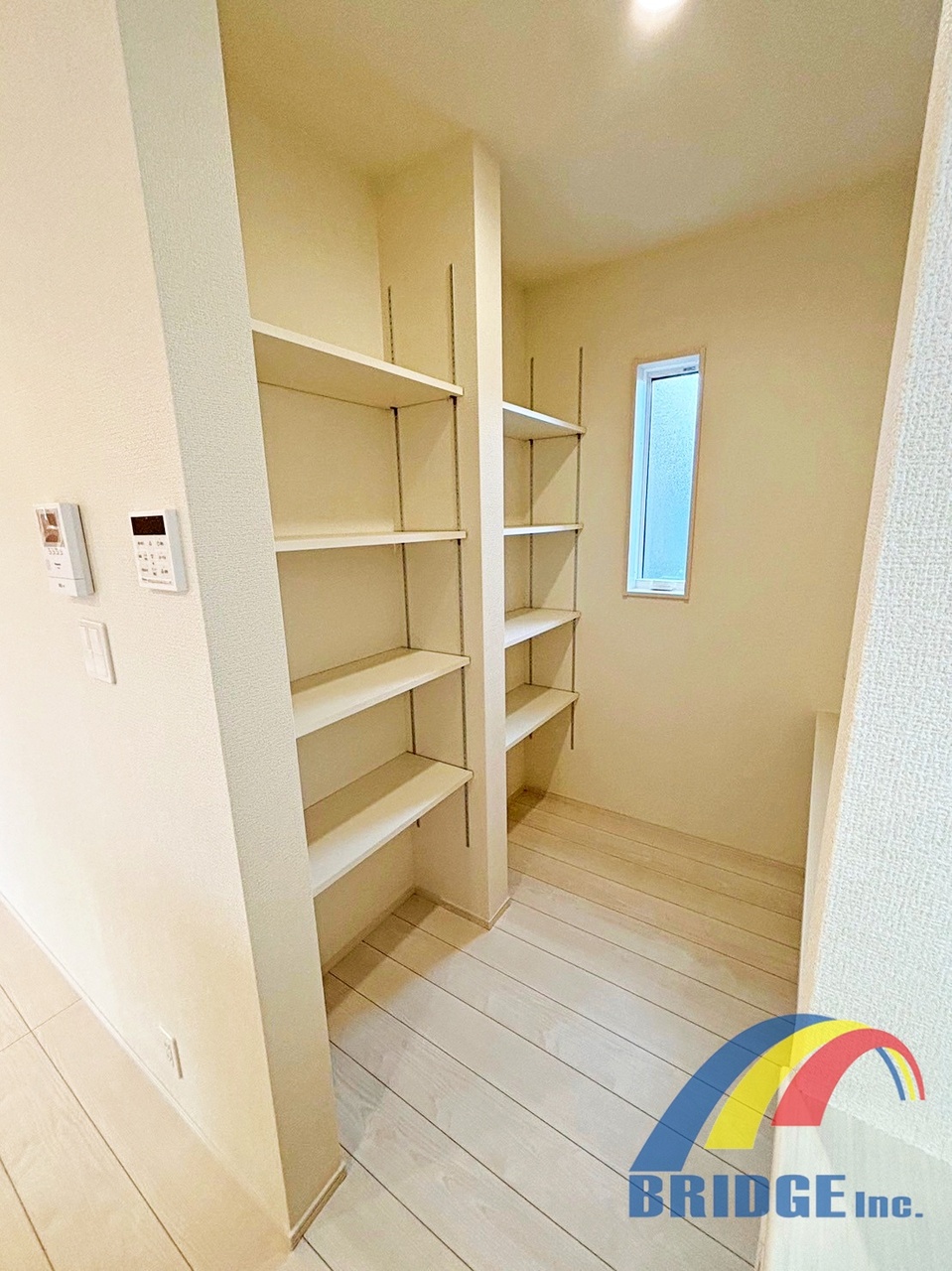 土間収納、パントリー、2WIC、2階ホール収納付き。