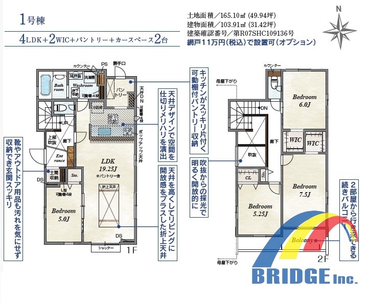 | 建築確認番号 | 第R07SHC109136号 | 駐車スペース | 2台(カースペース:並列) |