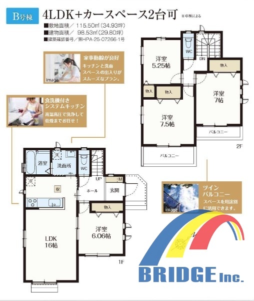 | 建築確認番号 | 第HPA-25-07265-1号、他 | 駐車スペース | 2台(カースペース:並列) |