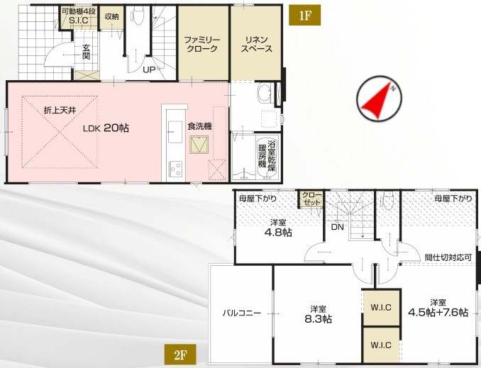 | 間取 | 3LDK + 間仕切り可能 (LDK20帖、洋室12.1帖、洋室8.3帖、洋室4.8帖) | ||
