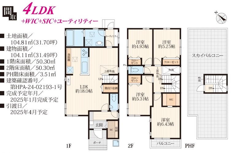 | 建築確認番号 | 第HPA-24-02193-1号 | 駐車スペース | 1台(カースペース) |