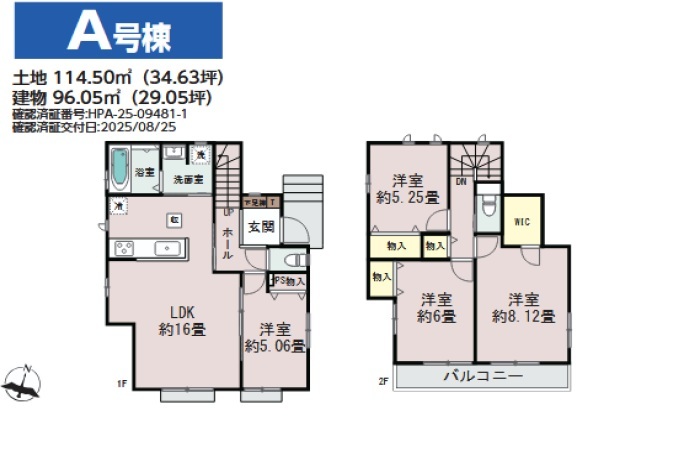 | 間取 | 4LDK + WIC (LDK16帖、洋室8.12帖、洋室6帖、洋室5.25帖、洋室5.06帖) | ||