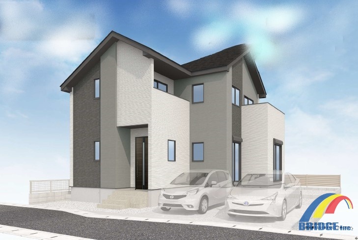 駐車2台可能で、全居室南向きの陽光溢れる4LDKの邸宅です。 収納面も豊富で、ホールクロークや季節物の入れ替えが楽々なウォークインクローゼット完備、バルコニーは2面有り便利な住環境が整っております。 外観パース