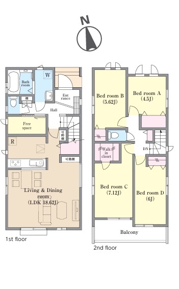 | 間取 | 4LDK + WIC、フリースペース (LDK18.62帖、洋室5.62帖、洋室4.5帖、洋室7.12帖、洋室6帖) | ||