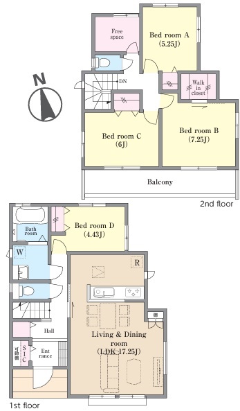 | 間取 | 4LDK + WIC、フリースペース、SIC (LDK17.25帖、洋室4.43帖、洋室6帖、洋室7.25帖、洋室5.25帖) | ||