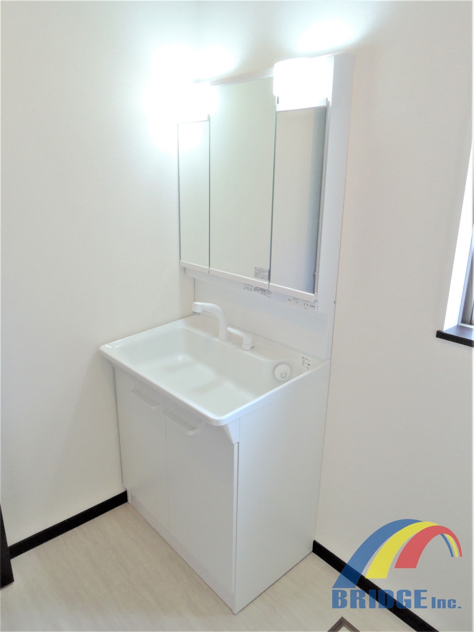 A号棟 朝の身支度が快適な独立洗面台♪裏には収納になっておりお化粧道具もすっきり収納が出来ます!