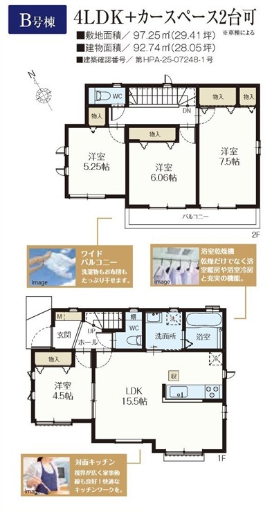 | 建築確認番号 | 第HPA-25-07248-1号 | 駐車スペース | 2台可(カースペース) |