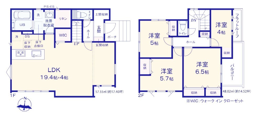 | 間取 | 4LDK + 収納多数で使いやすい間取です (LDK23.4帖、洋室6.5帖、洋室5.7帖、洋室5帖、洋室4帖) | ||