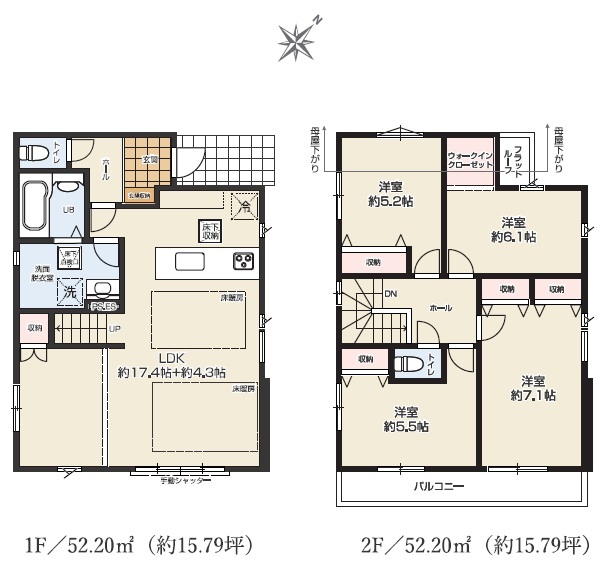 | 間取 | 4LDK + 収納多数で使いやすい間取です (LDK21.7帖、洋室71帖、洋室6.1帖、洋室5.5帖、洋室5.2帖) | ||