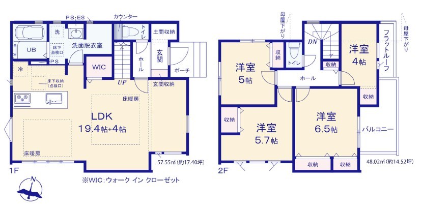 | 間取 | 4LDK + 収納多数で使いやすい間取です (LDK23.4帖、洋室6.5帖、洋室5.7帖、洋室5帖、洋室4帖) | ||