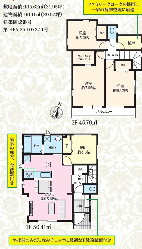 | 建築確認番号 | 第HPA-25-10735-1号、他 | 駐車スペース | 1台(カースペース) |