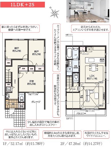 | 間取 | 1LDK + 2S (LDK21.2帖、洋室6.5帖、S5.2帖、S5帖) | ||