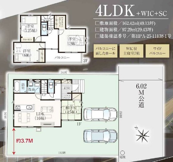 | 建築確認番号 | 第HPA-25-11138-1号 | 駐車スペース | 2台(カースペース:並列) |