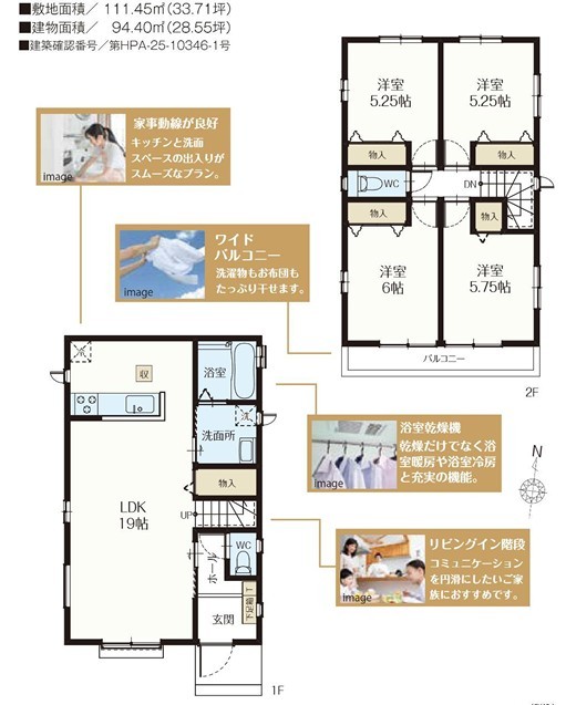| 建築確認番号 | 第HPA-25-10346-1号、他 | 駐車スペース | 2台(カースペース:縦列) |
