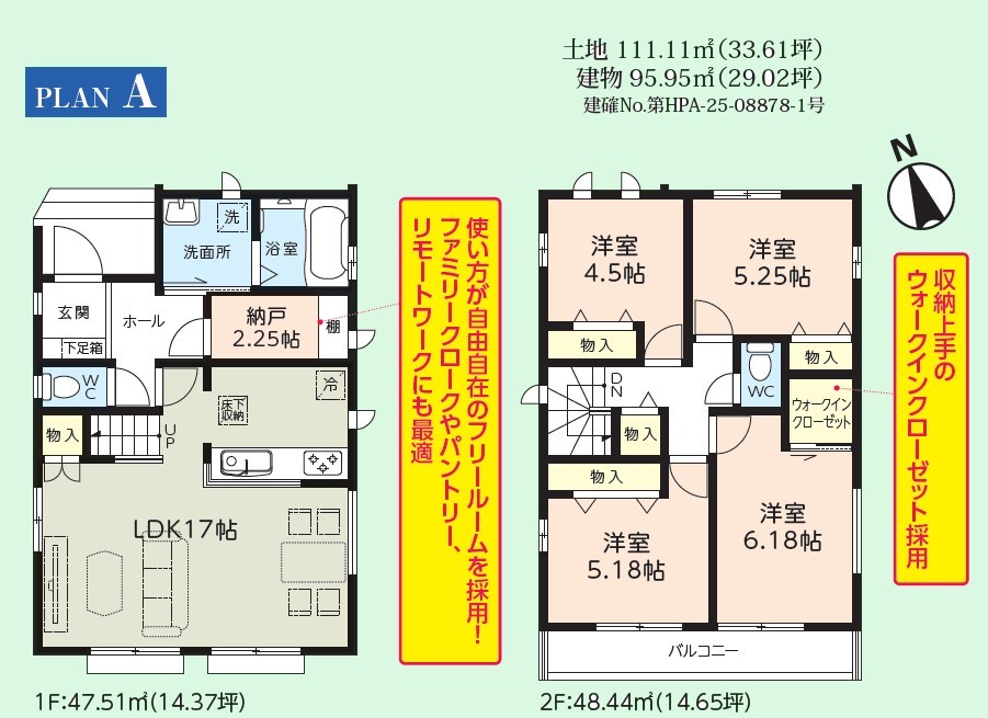 | 建築確認番号 | 第HPA-25-08878-1号 | 駐車スペース | 2台(カースペース:縦列) |