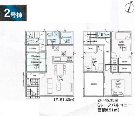 | 間取 | 4LDK (LDK16.7帖、和室4.5帖、洋室7.5帖、洋室6帖、洋室5帖) | ||