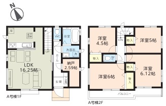 | 間取 | 4LDK (LDK16.25帖、洋室6.12帖、洋室6帖、洋室5帖、洋室4.5帖) | ||