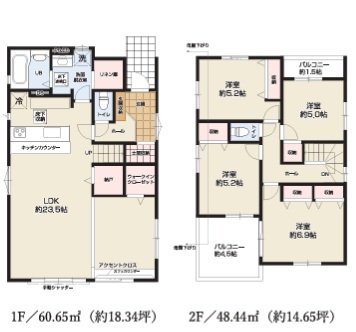 | 間取 | 4LDK + リネン庫、WIC (LDK23.5帖、洋室6.9帖、洋室5.2帖、洋室5.2帖、洋室5帖) | ||
