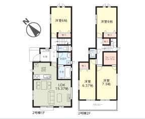 | 間取 | 4LDK (LDK15.37帖、洋室7.5帖、洋室6.37帖、洋室6帖、洋室6帖) | ||