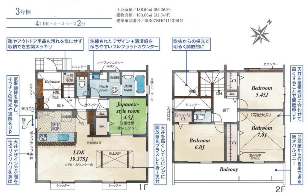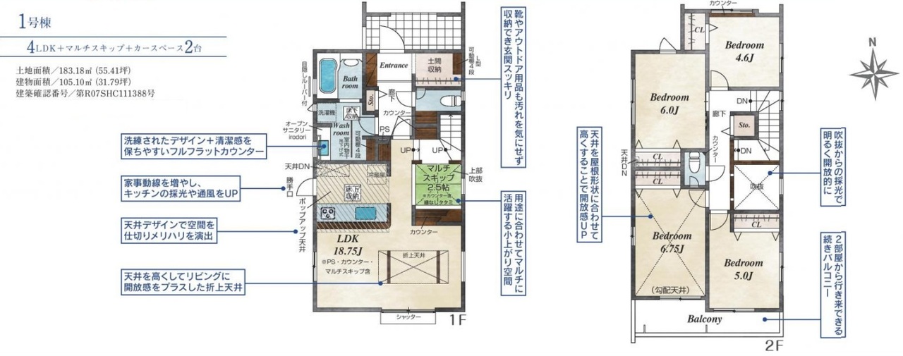 | 建築確認番号 | 第R07SHC111388号、他 | 駐車スペース | 2台(カースペース:並列) |