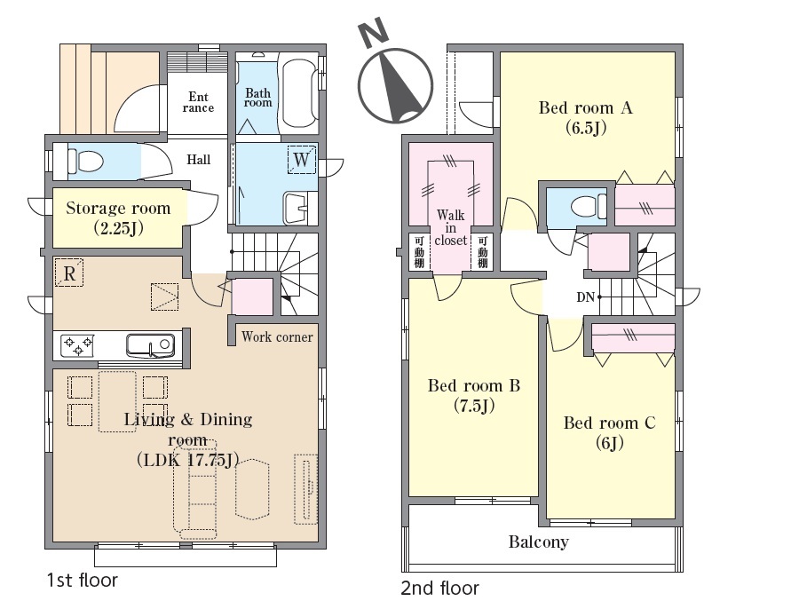 | 間取 | 3SLDK + WIC付き、ホール収納 (LDK17.75帖、洋室7.5帖、洋室6.5帖、洋室6帖、S2.25帖) | ||