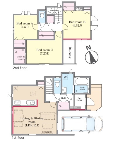 | 間取 | 3LDK + WIC付き (LDK15帖、洋室7.25帖、洋室6.62帖、洋室4.5帖) | ||