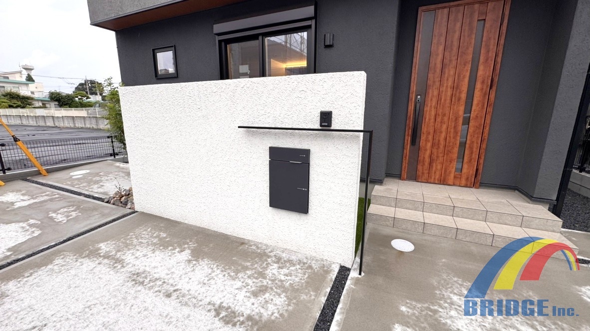 - 色落ちや防火などに強い、高耐候性ジョリパッドで仕上げた外壁と門塀がスタイリッシュでおしゃれな邸宅!