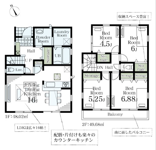 | 間取 | 4LDK + 全居室収納付き (LDK16帖、洋室6.88帖、洋室6帖、洋室5.25帖、洋室4.5帖) | ||