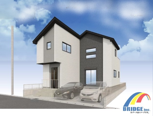 駐車2台可能で、開放的でお洒落な吹抜設計の邸宅。 収納スペース豊富で、SIC,パントリーや季節もの入れ替え楽々なウォークインクローゼット2部屋完備で利便性に長けた住環境が整っております。 外観パース