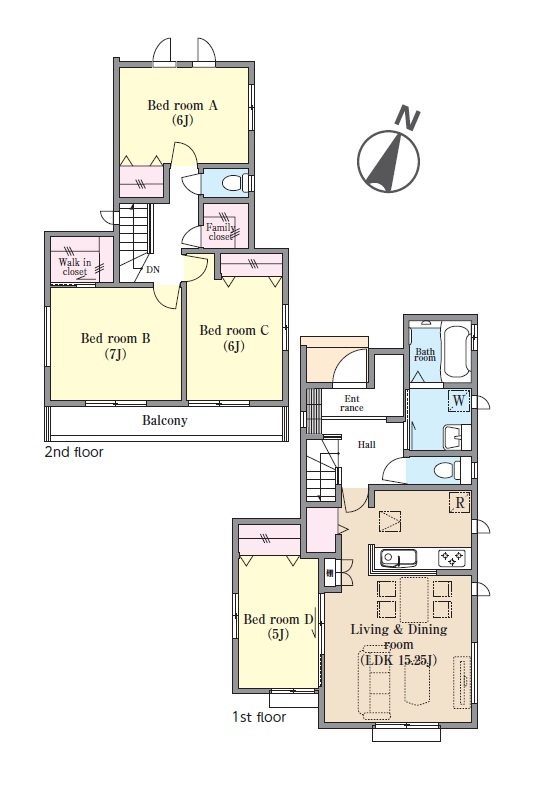 | 間取 | 4LDK + WIC、ファミリークローク付き、リビング収納 (LDK15.25帖、洋室7帖、洋室6帖、洋室6帖、洋室5帖) | ||