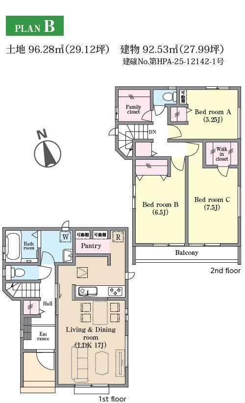 B号棟 駐車1台可能で、長期優良住宅で特典適用の安心住宅。 玄関ホール収納、パントリー、WIC、ファミリークローゼット付きで、たっぷりしまえる嬉しいスペース。 また陽当良好の明るいバルコニーも付いています。 是非、松戸市内で新築一戸建てをお探しの方はお気軽にお問い合わせください。 お待ちしております。
