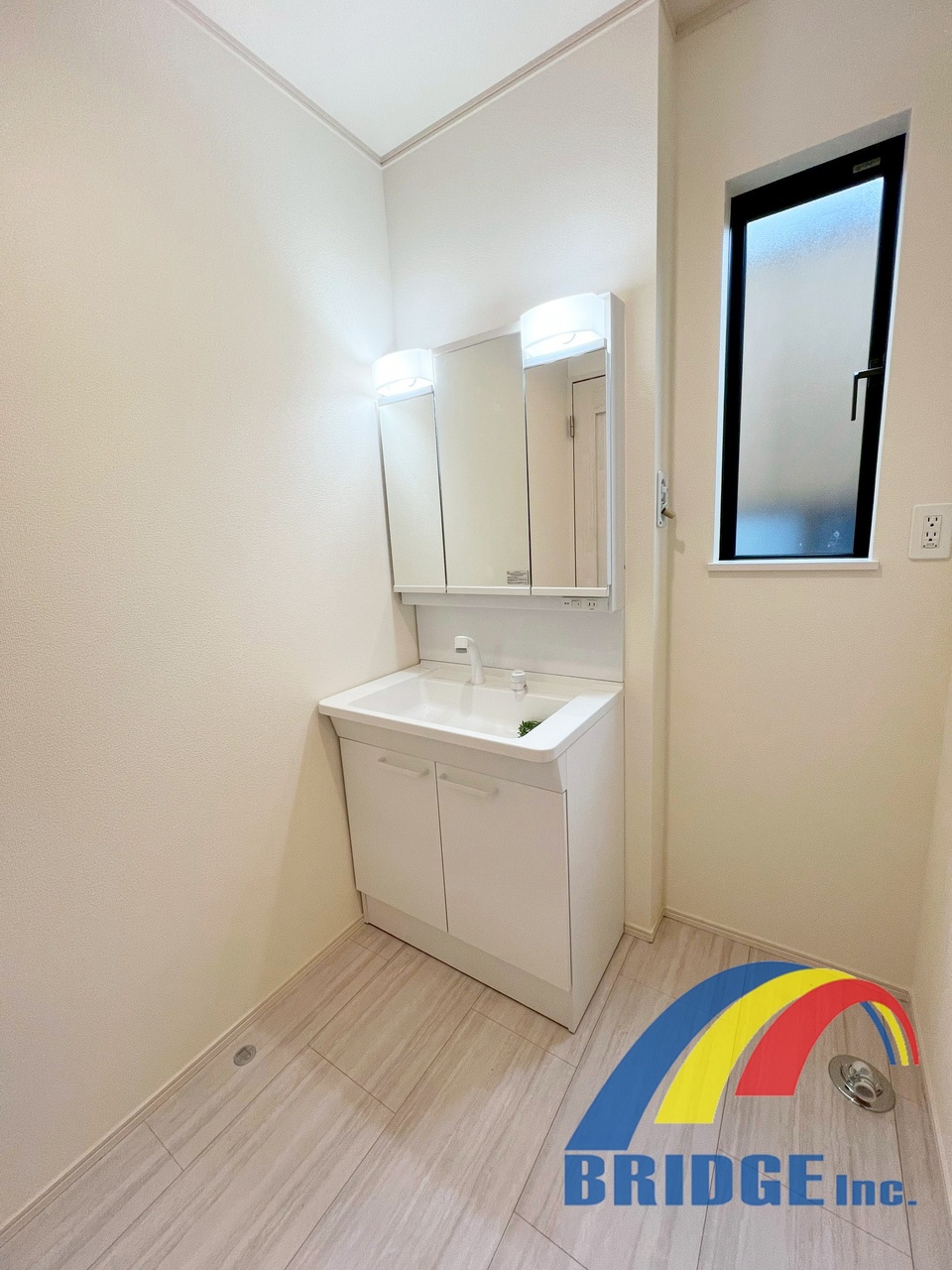 A号棟 朝の身支度が快適な独立洗面台♪裏は収納になっており、お化粧道具もすっきり収納が出来ます!