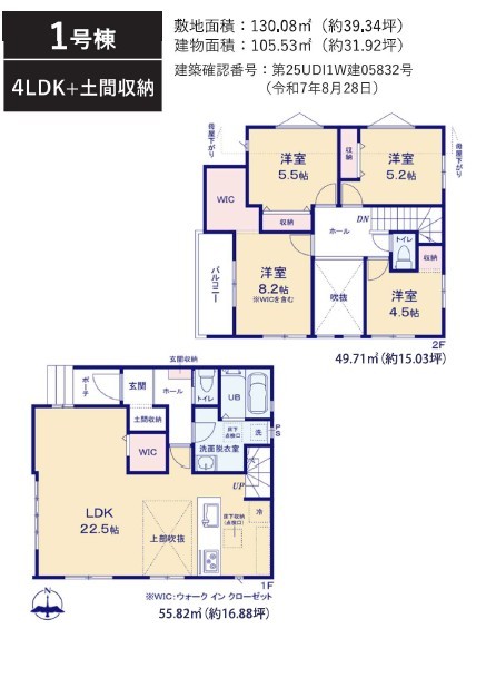 | 間取 | 4LDK~4LDK + 土間収納、2WIC付き (LDK22.7帖、洋室8.2帖、洋室5.5帖、洋室5.2帖、洋室4.5帖) | ||