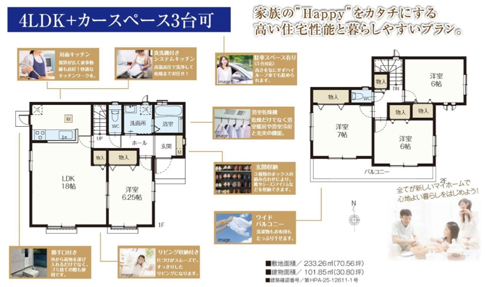 | 建築確認番号 | 第HPA-25-12611-1号 | 駐車スペース | 3台(カースペース:縦列) |