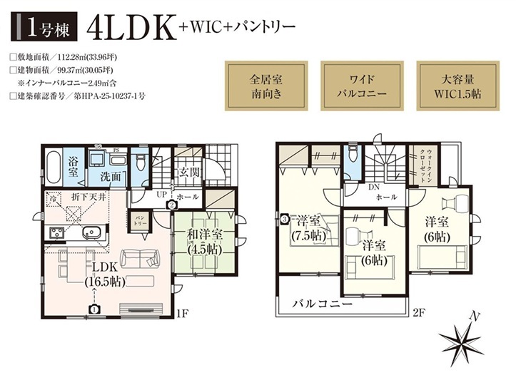 | 間取 | 4LDK + パントリー、WIC (LDK16.5帖、和室4.5帖、洋室7.5帖、洋室6帖、洋室6帖) | ||