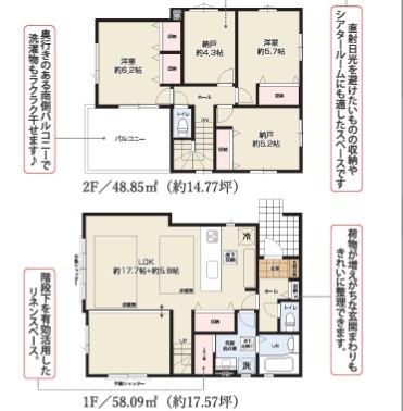 | 間取 | 2SLDK (LDK23.5帖、洋室5.7帖、洋室6.2帖、S5.2帖、S4.3帖) | ||