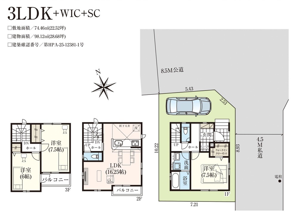 | 建築確認番号 | 第HPA-25-12381-1号 | 駐車スペース | 1台(カースペース) |